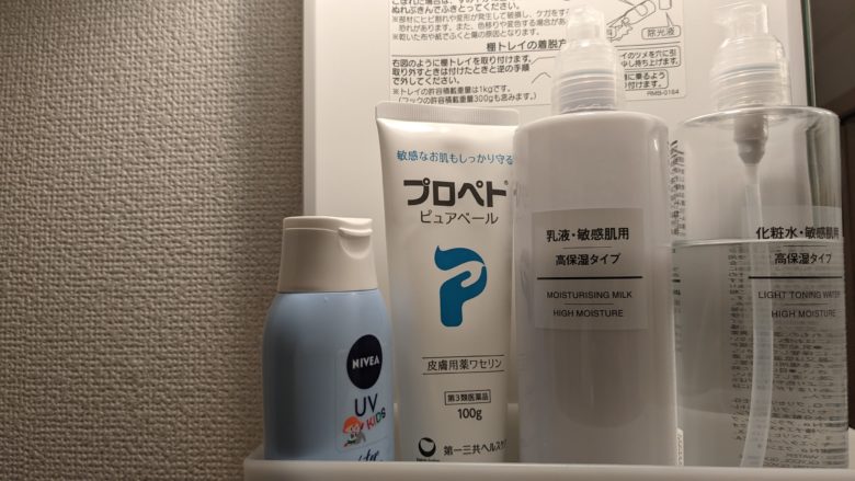 ワセリンは主に体と唇の感想を防ぐために使っています。赤ちゃん用ワセリンや青い容器のワセリンなど、薬局でいろいろなメーカーのものが置いてありますが、プロペトが今のところ一番です。気持ち、柔らかめで塗りやすいです。そして大きめ(100g)で、値段も1000円程度だったので、全身に惜しみなく使えます。